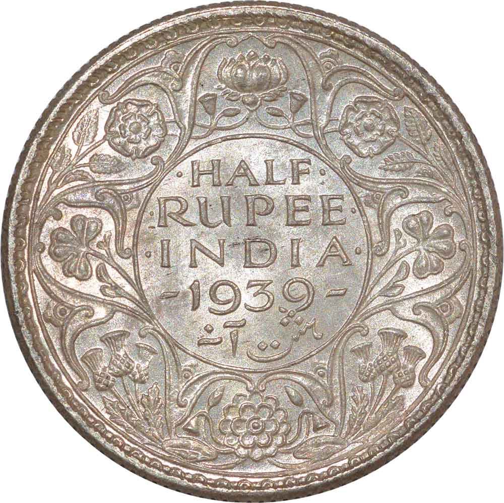 Silver Half Rupee of King George VI of Calcutta Mint of 1939.