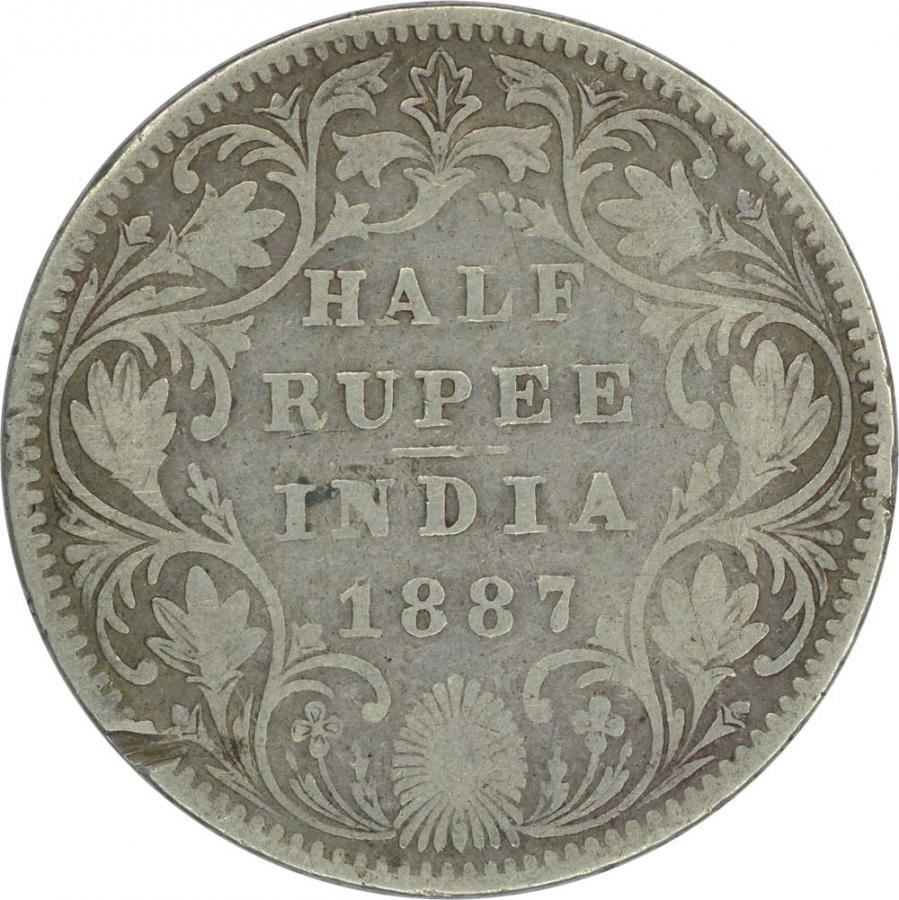 1887,Victoria Empress,Silver 1/2 Rupee,Bombay