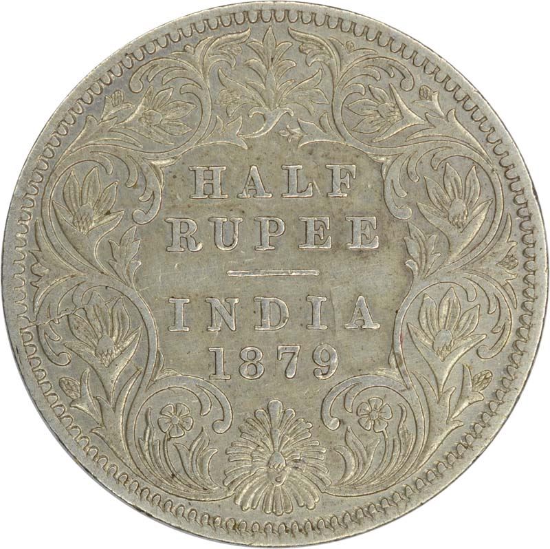 Silver Half Rupee of Victoria Empress of Calcutta Mint of 1879.