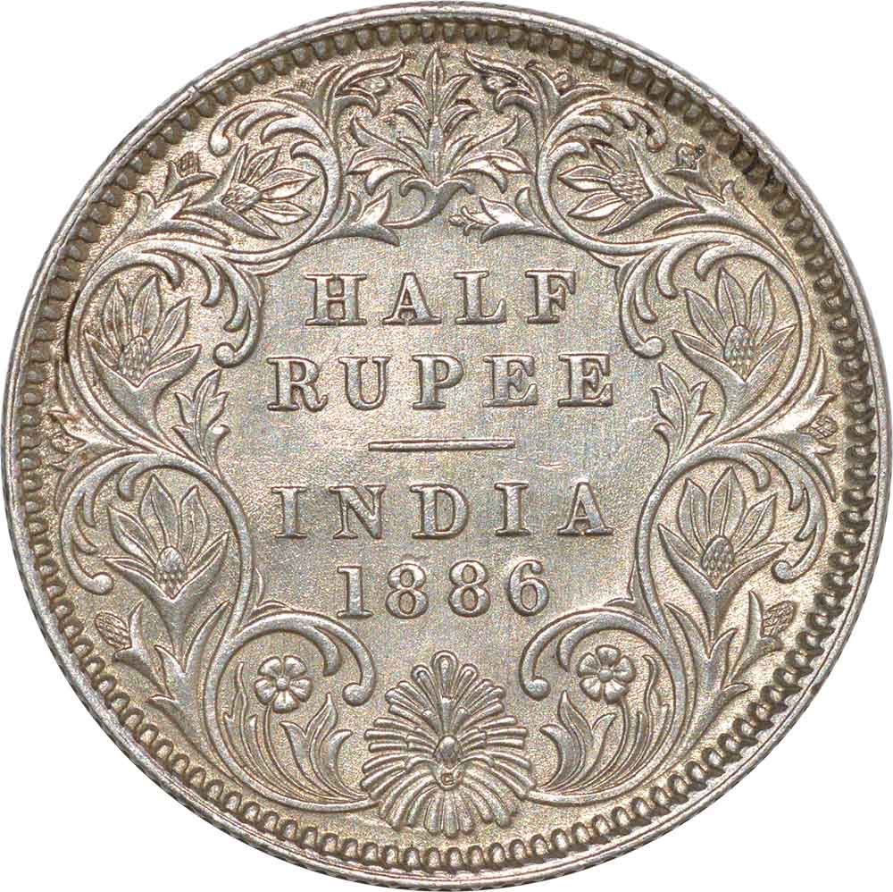 Silver Half Rupee of Victoria Empress of Calcutta Mint of 1886.