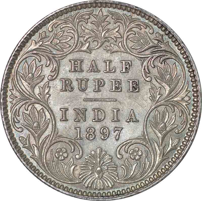 Silver Half Rupee of Victoria Empress of Calcutta Mint of 1897.