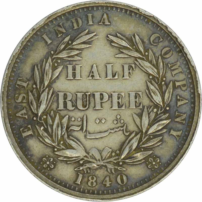 Silver Half Rupee of Victoria Queen of Calcutta Mint of 1840.