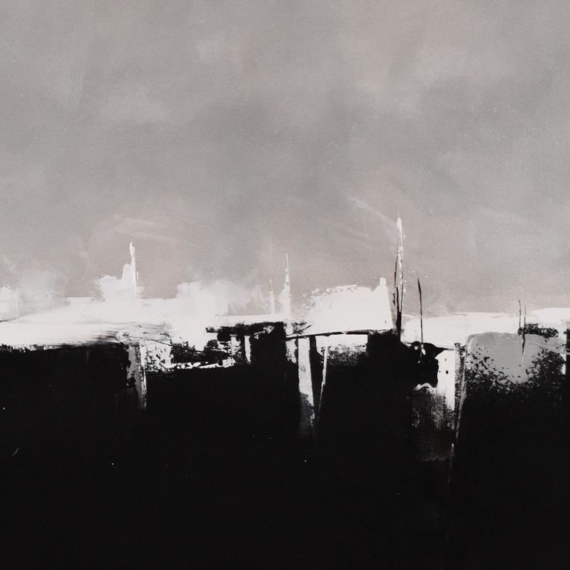 "Silver Harbor" is an original acrylic painting on canvas by Richard Leung, hand signed by the artist. Includes Letter of Authenticity. Measures approx. 35" x 39" (image).