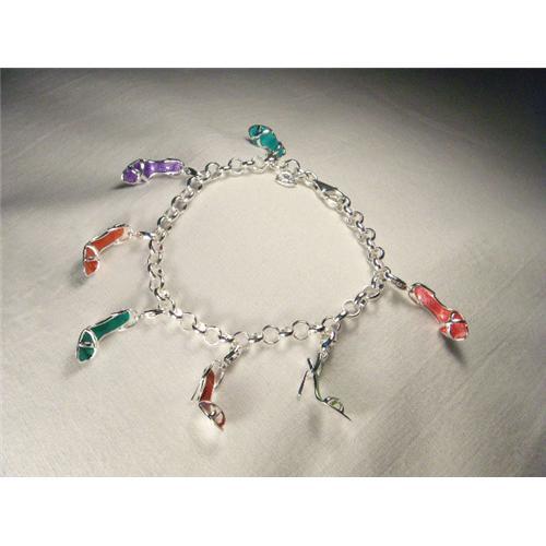 <tr><td>Title:Silver Hidalgo Enamel Heel Shoe Charm Braclet</td></tr>