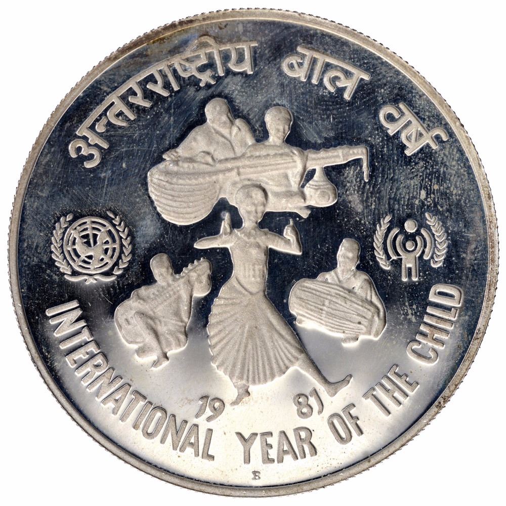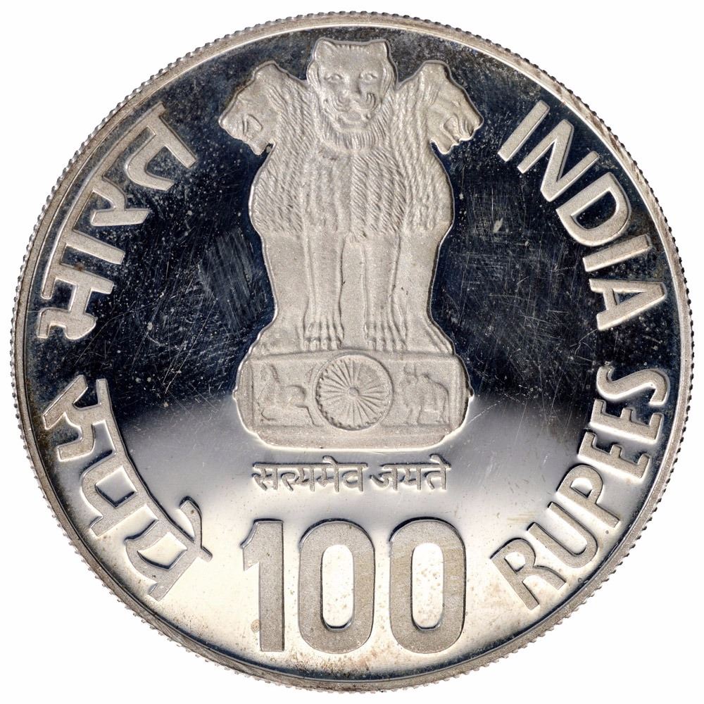 Silver Hundred Rupees Proof Coin of International Year of the Child of Bombay Mint.