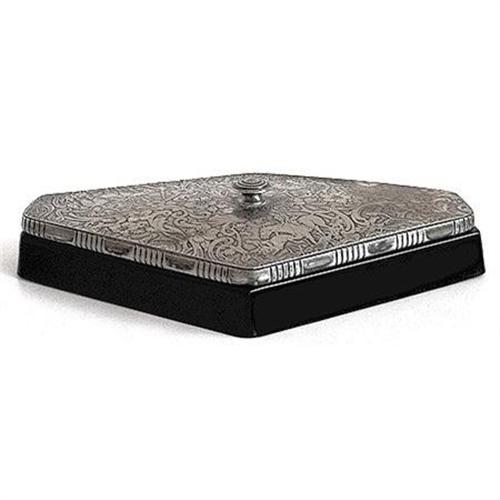<tr><td>Title:Silver Hunt Scene & Black Glass Make Up Compact</td></tr>