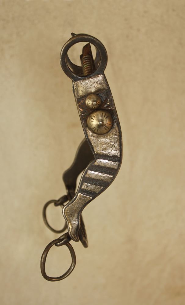 Uncommon fully silver inlaid California style lady leg spade bit with finely detailed engraved silver.