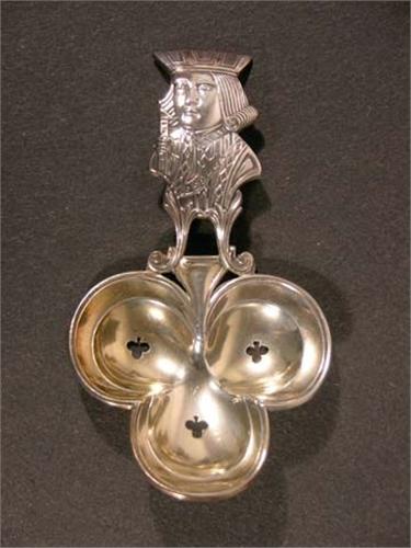Sterling silver king of clubs nut spoon, ca. 1900. 4.25"