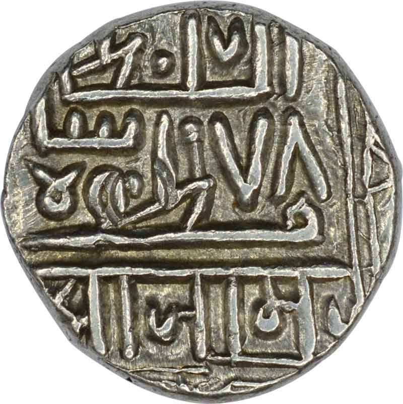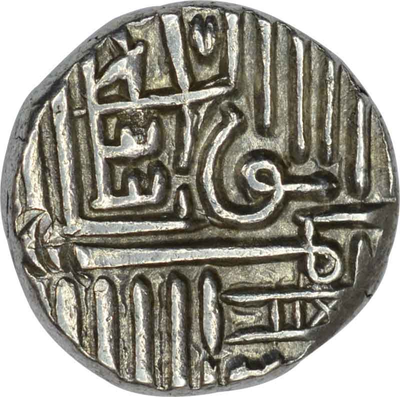 Obv: persian legend, date and nagari “ shri Jam”, Rev: persian legend, 4.75g, 14.69mm, about extremely fine.