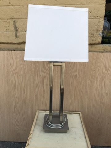 Silver Lamp w/ White Lamp Shade (2 - with no lamp shade or plug) 7.25" W x 31" H