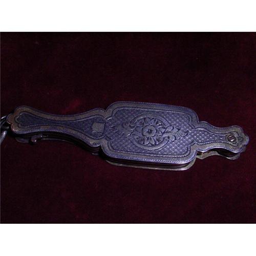 Silver lorgnet with blue glasses.,France, Circa 1900.