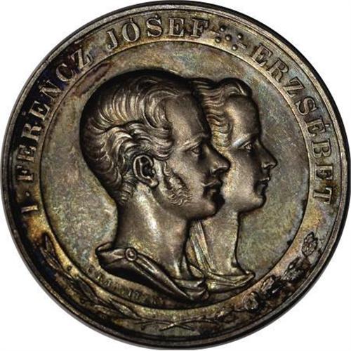 <B>Silver Medal Commemorating the Wedding of Franz Joseph in 1857.</B></I> Silver, 28.5 mm, 26.3 gm. Engraved by C. Radnitzky, commemorating the 1857 wedding of Franz Joseph. A super nice medal with great color and toning. <BR> <BR><BR><b>Shipping:</b> Coins & Currency (<a target="_blank" href="http://www.heritageauctions.com/common/shipping.php">view shipping information</a>)