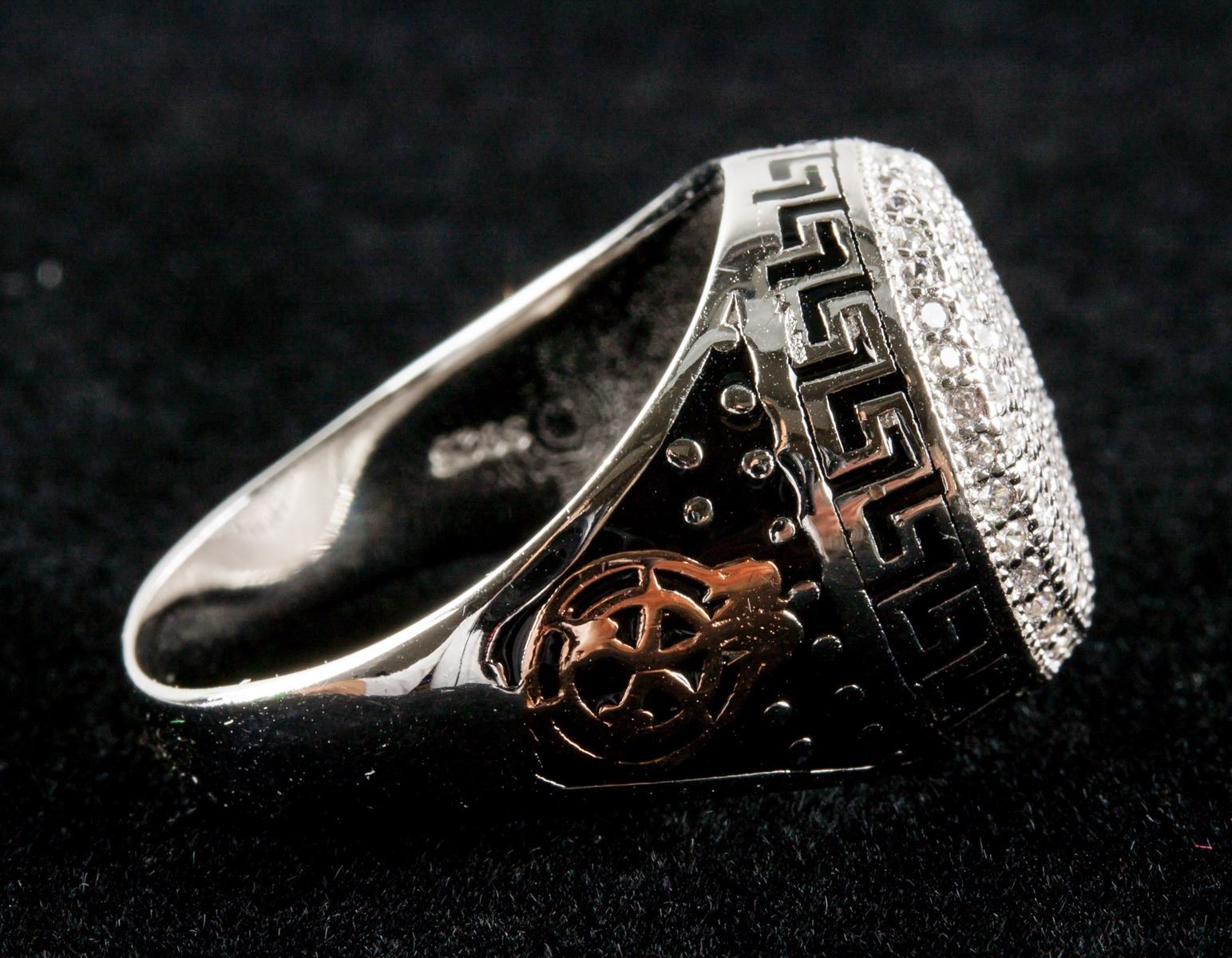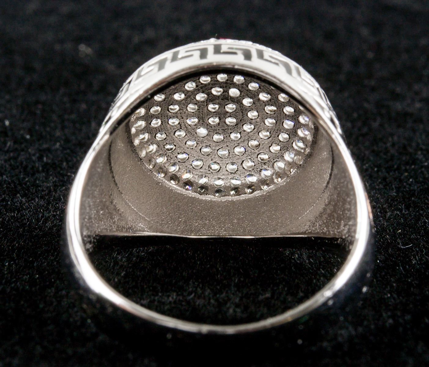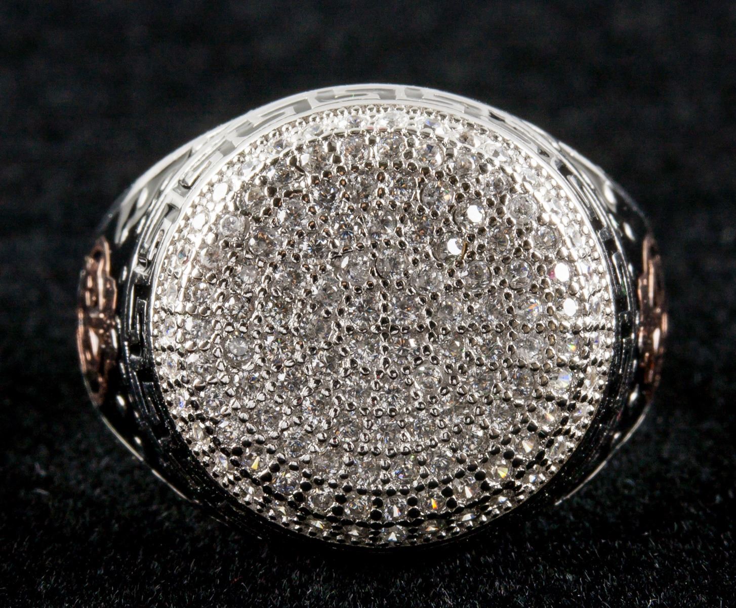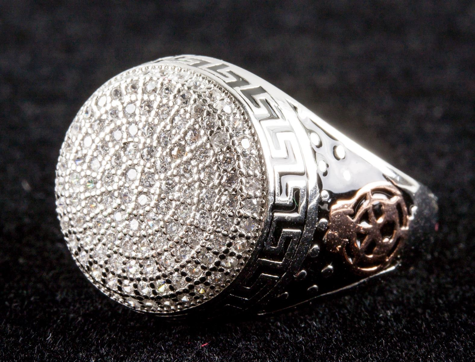 Stamped 925 silver men's Arabic style ring. Set with cubic zirconia. Retail value $200.