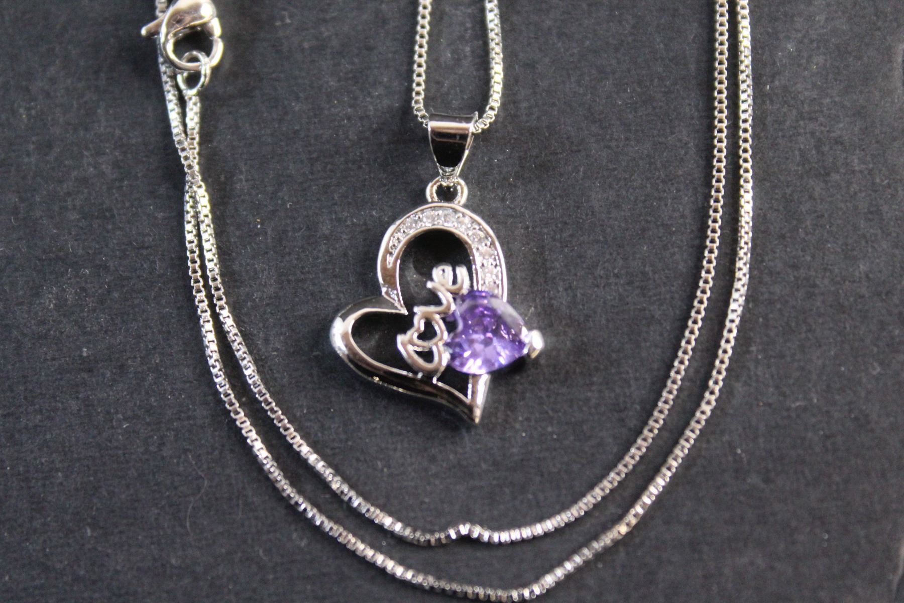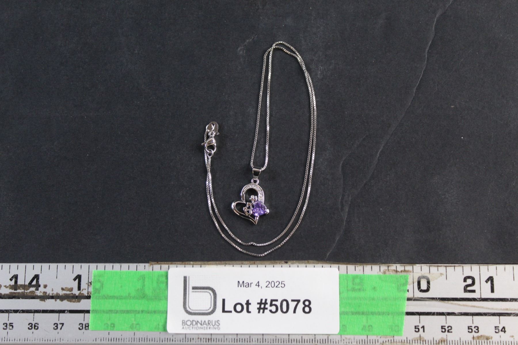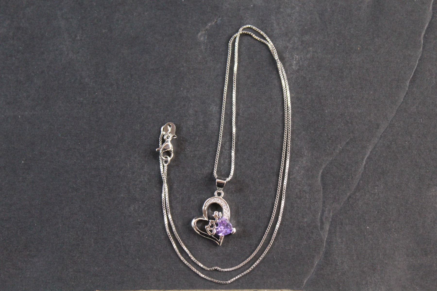 Silver Necklace with Purple Diamond Pendant - Authenticity Not Guaranteed