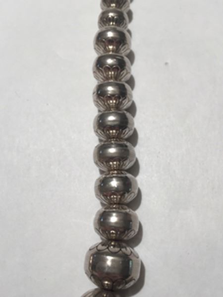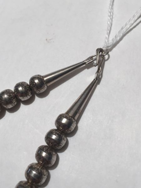 Late 1900s, Simple all-sterling stamped graduated bead necklace with sterling cones. Great condition. 23" long, beads 1/4" to 1/2"