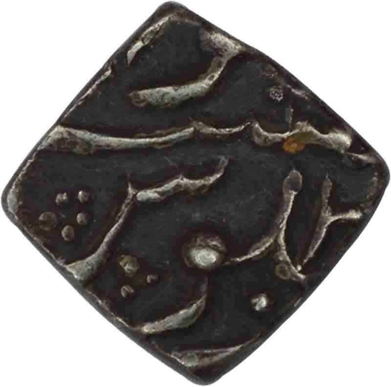Aurangzeb, Ujjain, Silver 1/8 Rupee,Obv:"Badr Munir"couplet,Rev:sana julus zerb, 1.55g, 8.95 X 8.92mm, (KM # A292.2), about extremely fine,Rare.