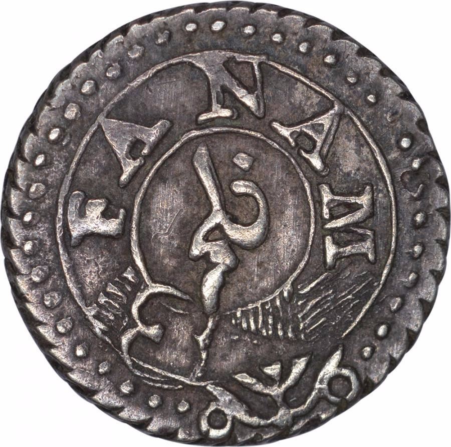 Madras Presidency, Silver Fanam, 1808 AD, 2nd Issue, Obv: value in persian and english, Rev: value in telugu and tamil, 0.95g, 11.46mm, (PR # 188/KM # 349), about extremely fine lovely condition overall scarce in this condition.