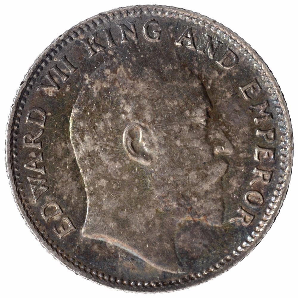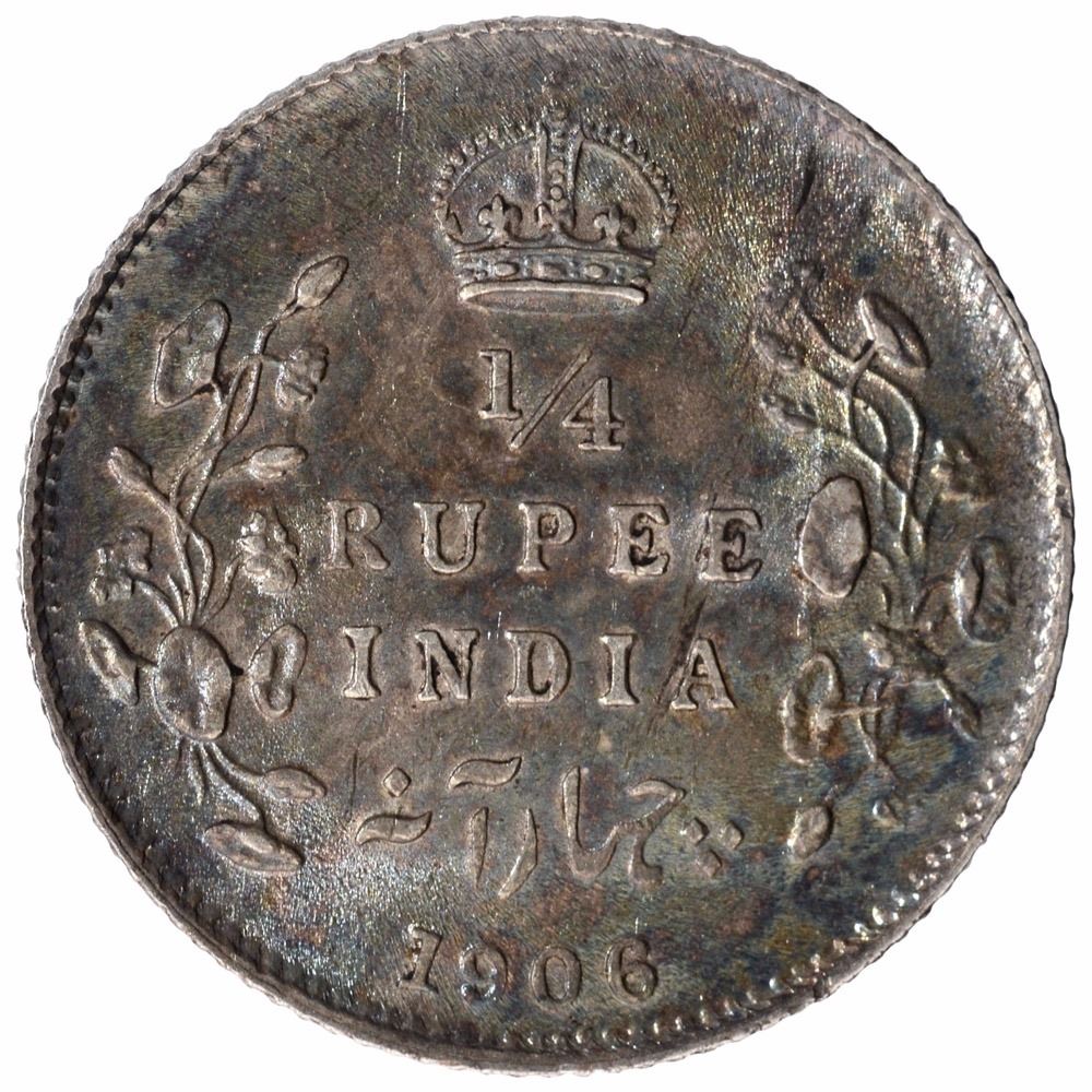 Silver One Quarter Rupee Coin of King Edward VII of Calcutta Mint of 1906.