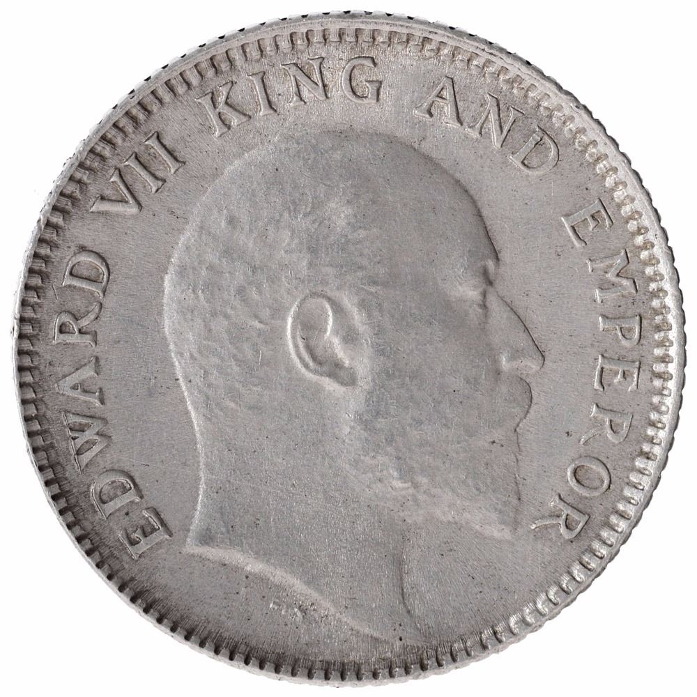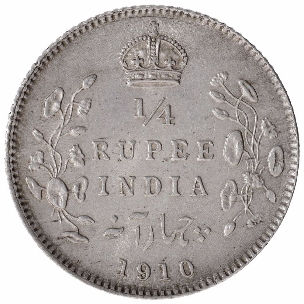 Silver One Quarter Rupee Coin of King Edward VII of Calcutta Mint of 1910.