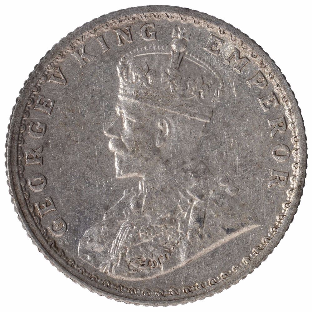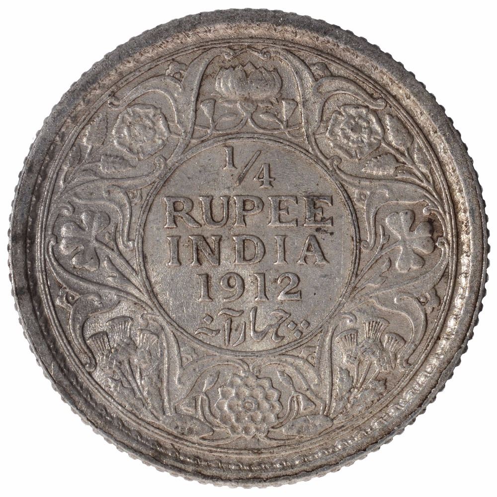 Silver One Quarter Rupee Coin of King George V of Calcutta Mint of 1912.