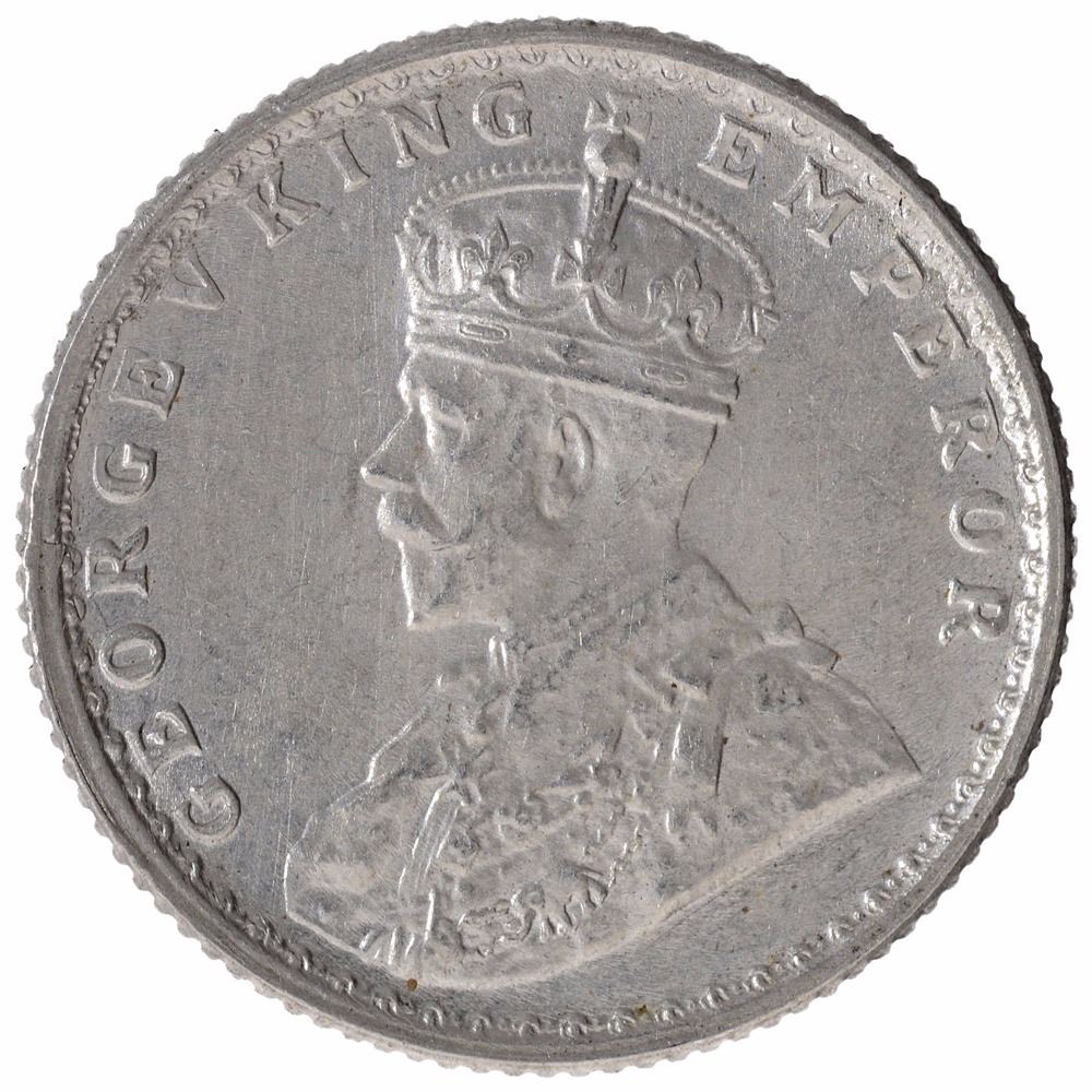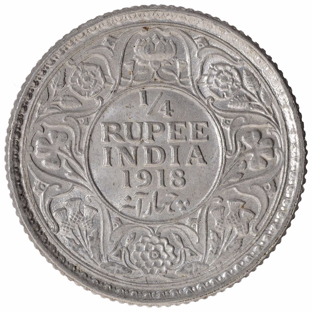 Silver One Quarter Rupee Coin of King George V of Calcutta Mint of 1918.