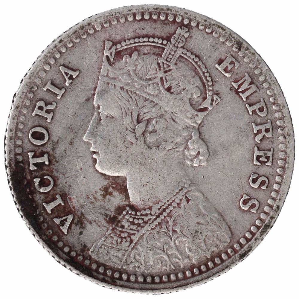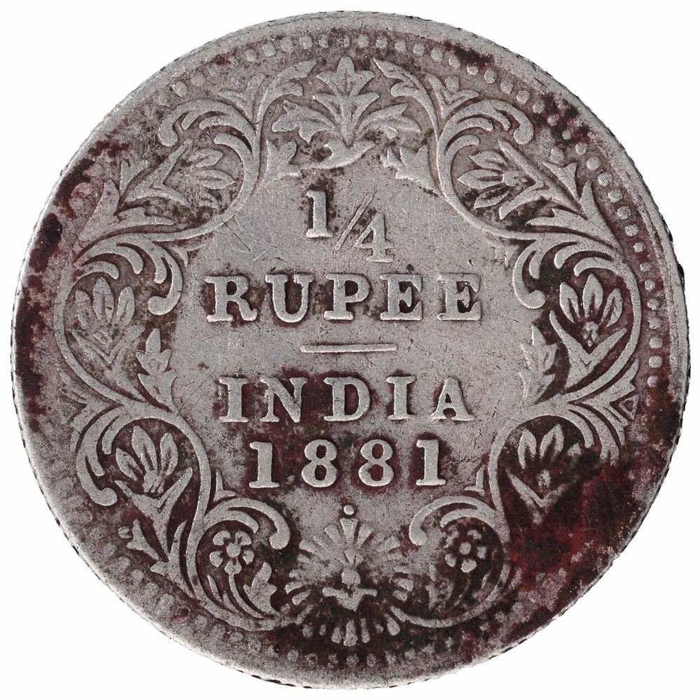 Silver One Quarter Rupee Coin of Victoria Empress of Bombay Mint of 1881.