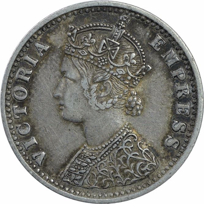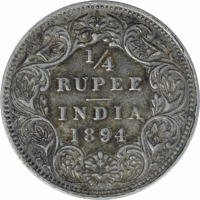 Silver One Quarter Rupee Coin of Victoria Empress of Bombay Mint of 1894.