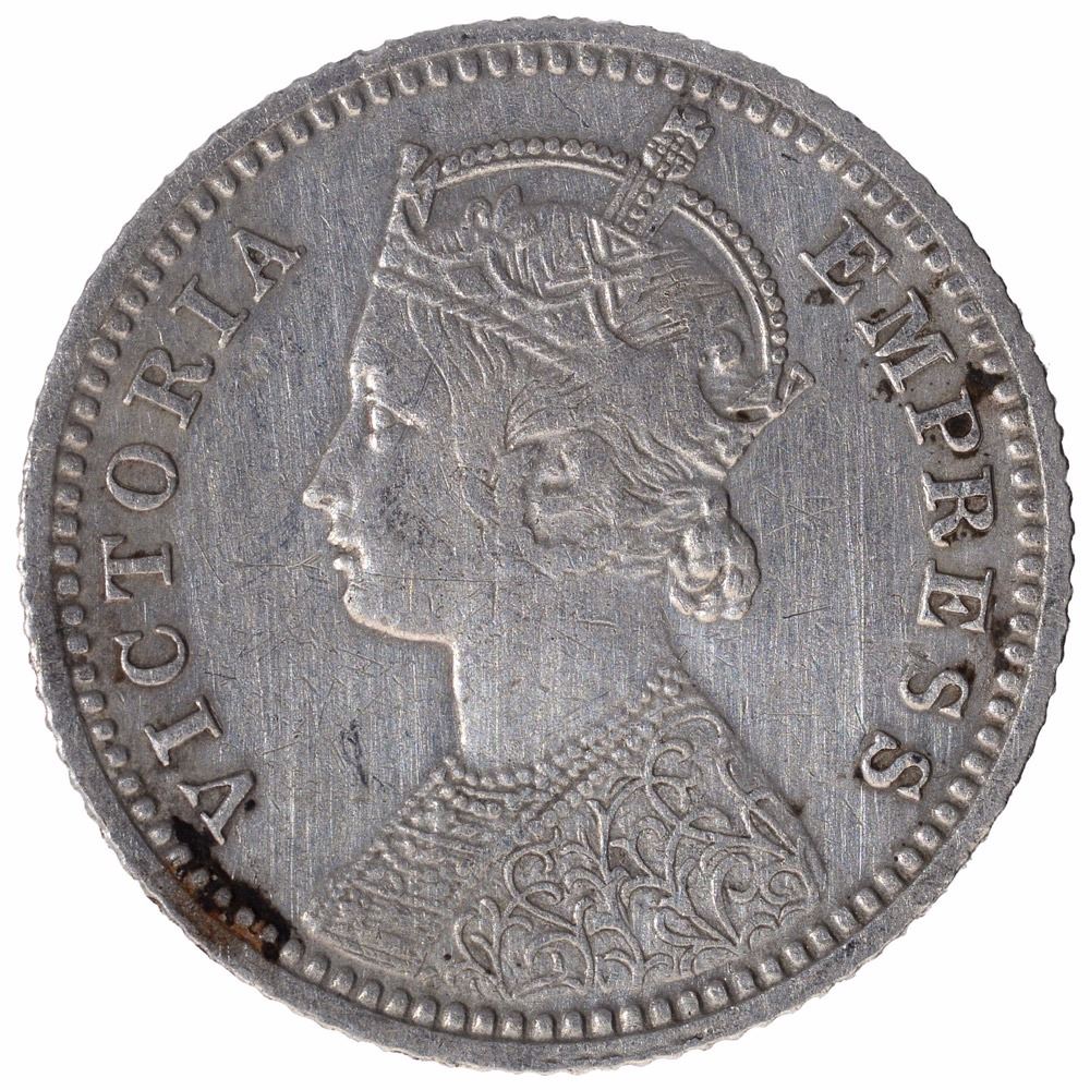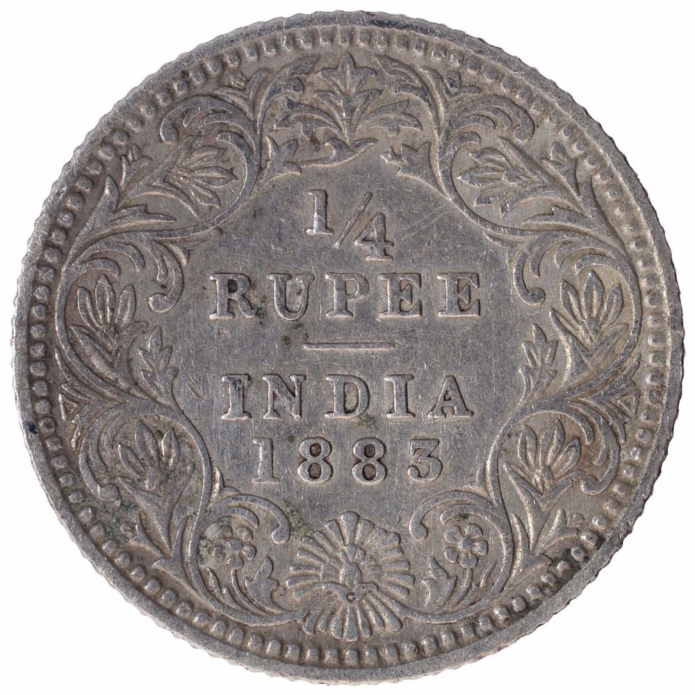 Silver One Quarter Rupee Coin of Victoria Empress of Calcutta Mint of 1883.