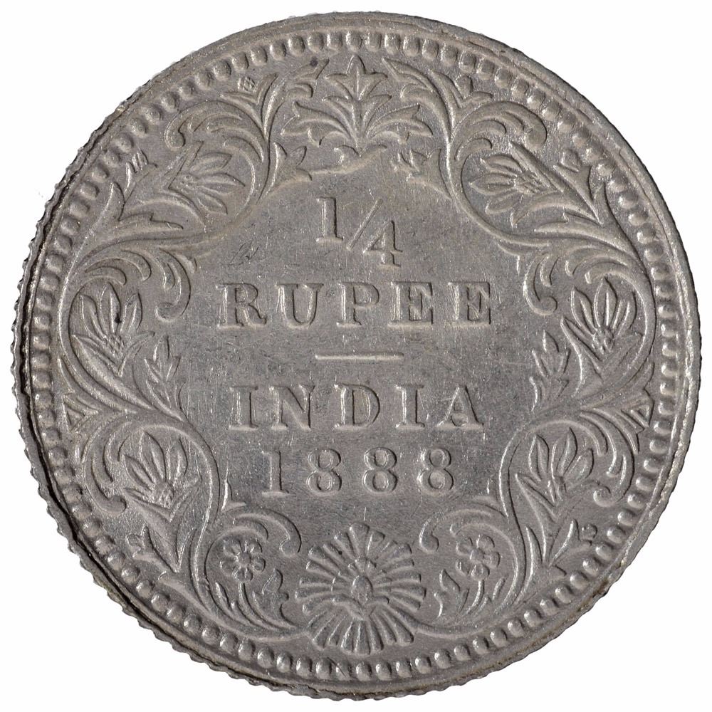 Silver One Quarter Rupee Coin of Victoria Empress of Calcutta Mint of 1888.