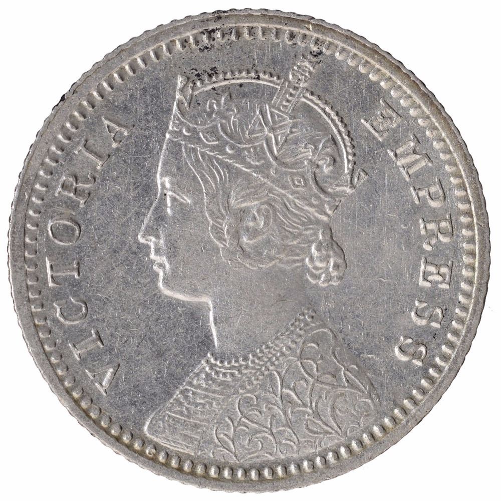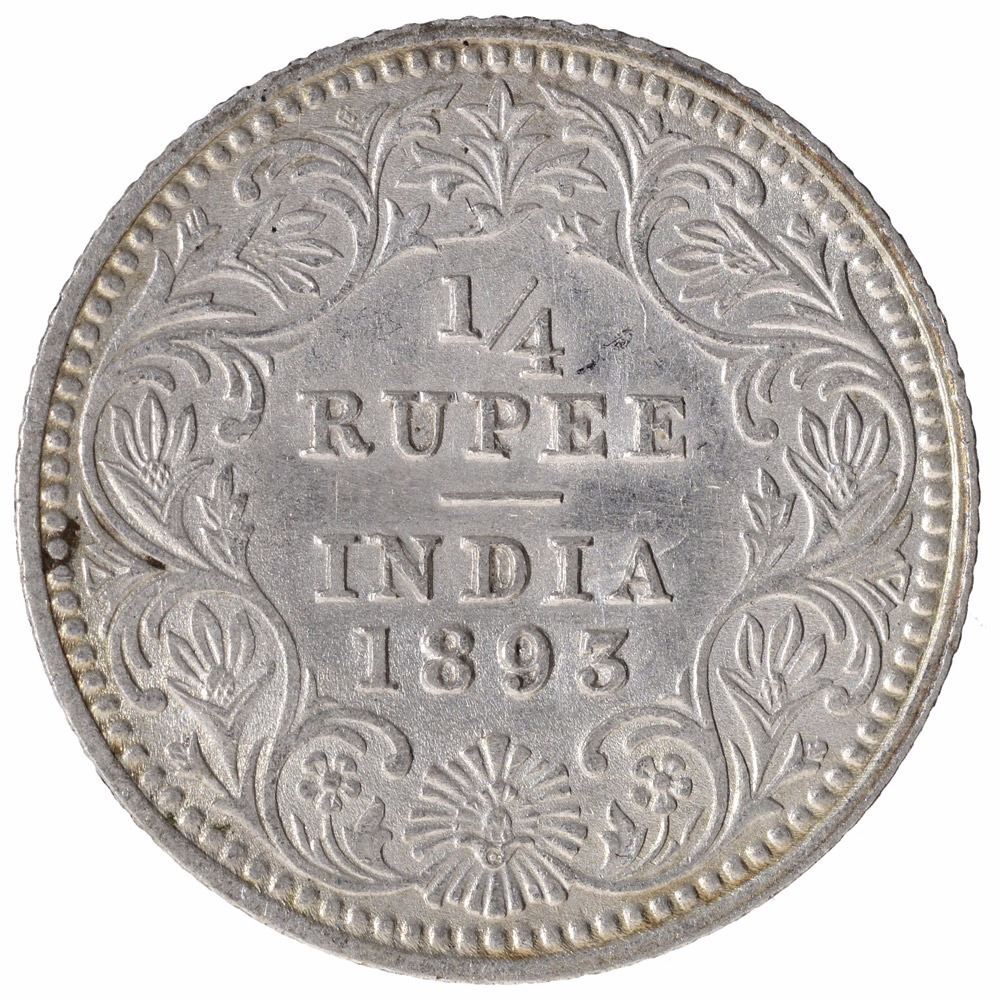 Silver One Quarter Rupee Coin of Victoria Empress of Calcutta Mint of 1893.