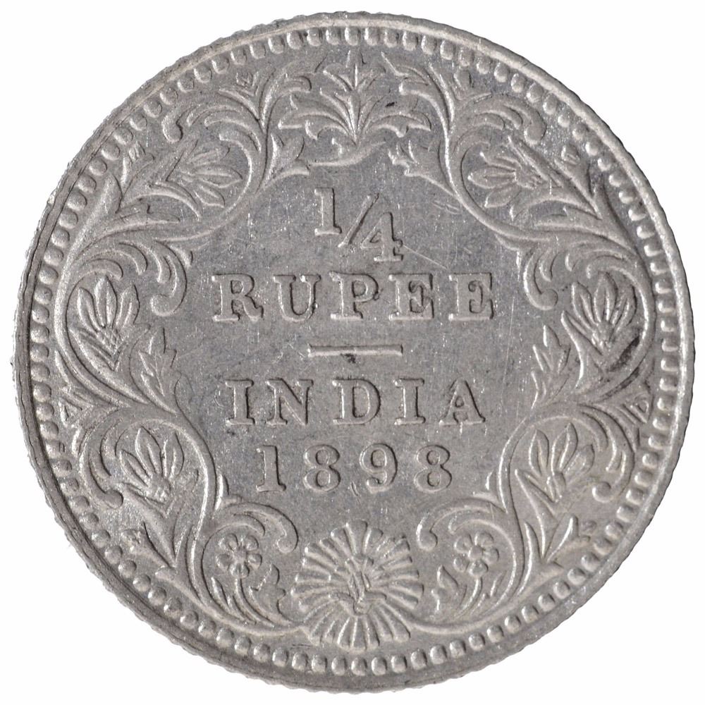 Silver One Quarter Rupee Coin of Victoria Empress of Calcutta Mint of 1898.