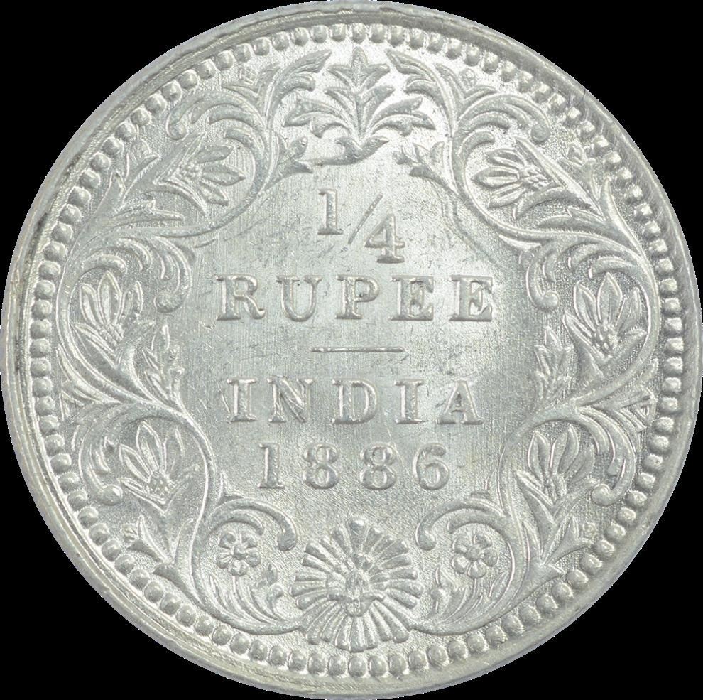 Silver One Quarter Rupee coin of Victoria Empress of 1886