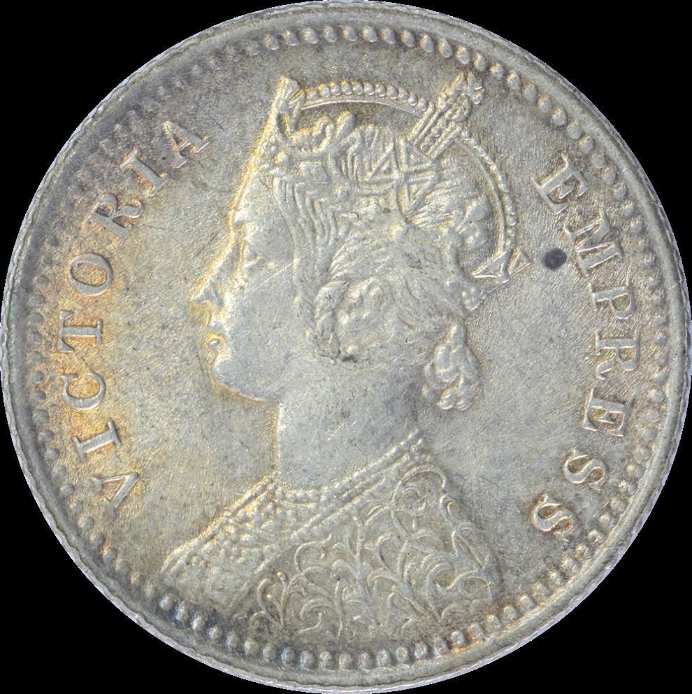1898,Victoria Empress,Silver 1/4 Rupee,Calcutta Mint,C/II/C incuse, (PR # 402),Gem UNC with toning,Rare.
