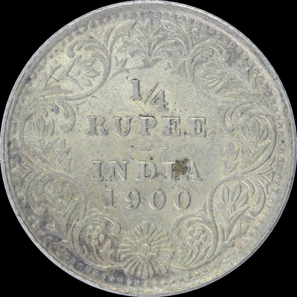 1900,Victoria Empress,Silver 1/4 Rupee,Calcutta Mint,C/II/C incuse, (PR # 403),Gem UNC with toning, Extemely Rare.