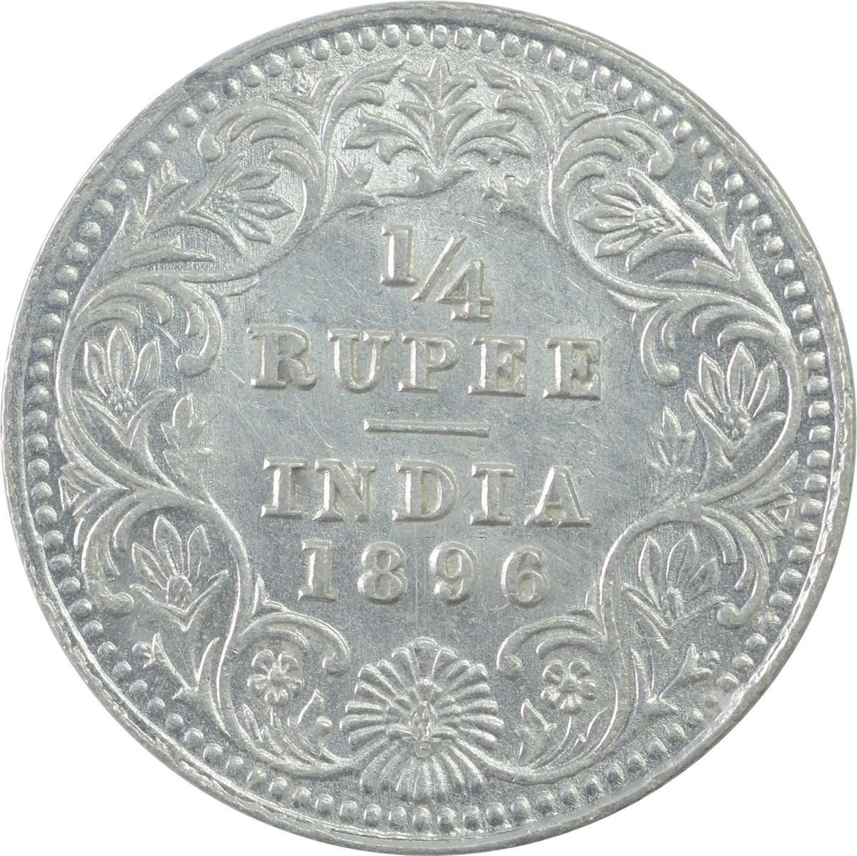 Silver One Quarter Rupee coin of Victoria Empress of Calcutta Mint of 1896.