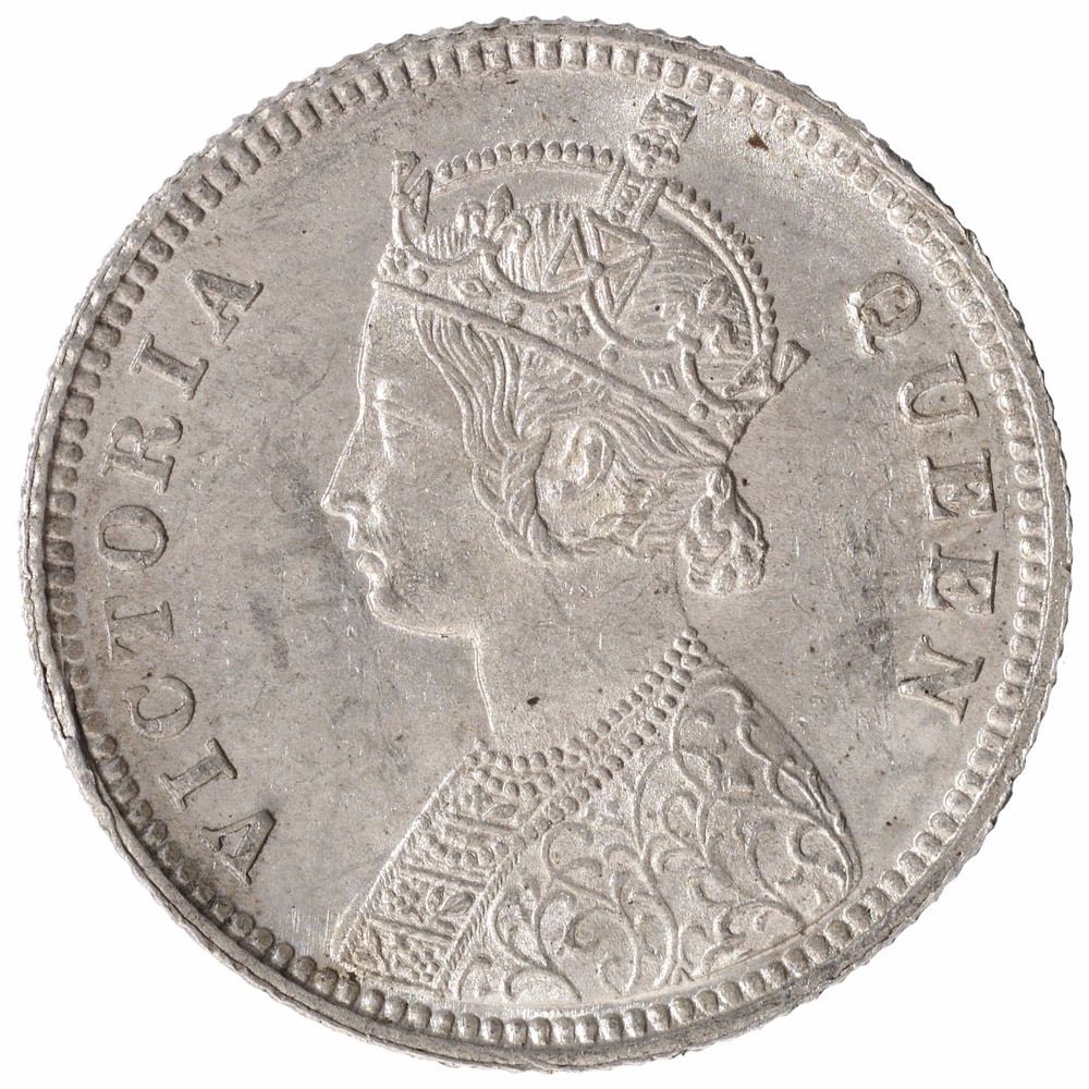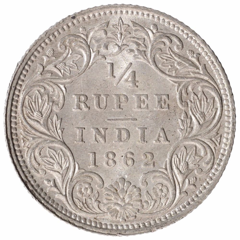 Silver One Quarter Rupee of Victoria Queen of Calcutta Mint of 1862.