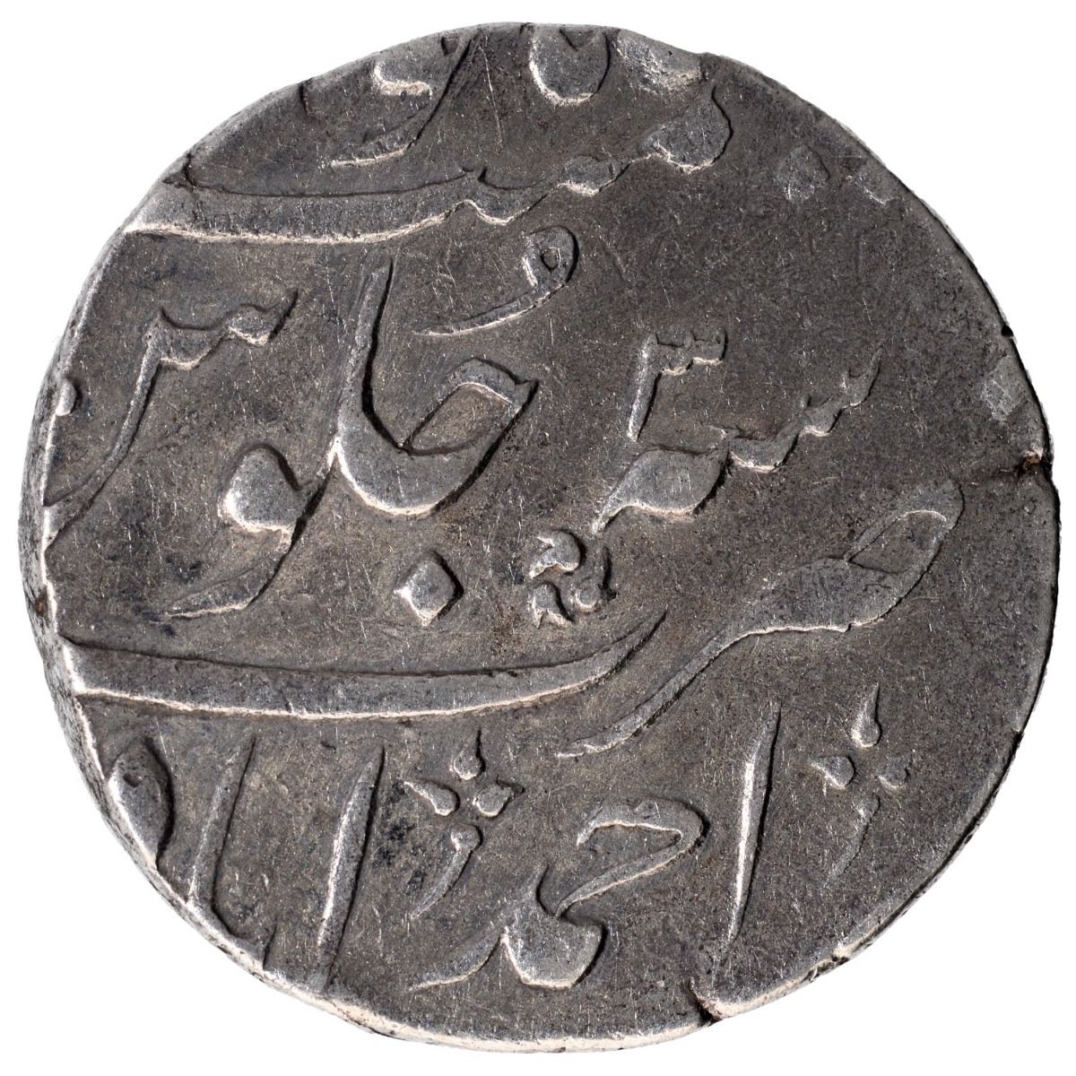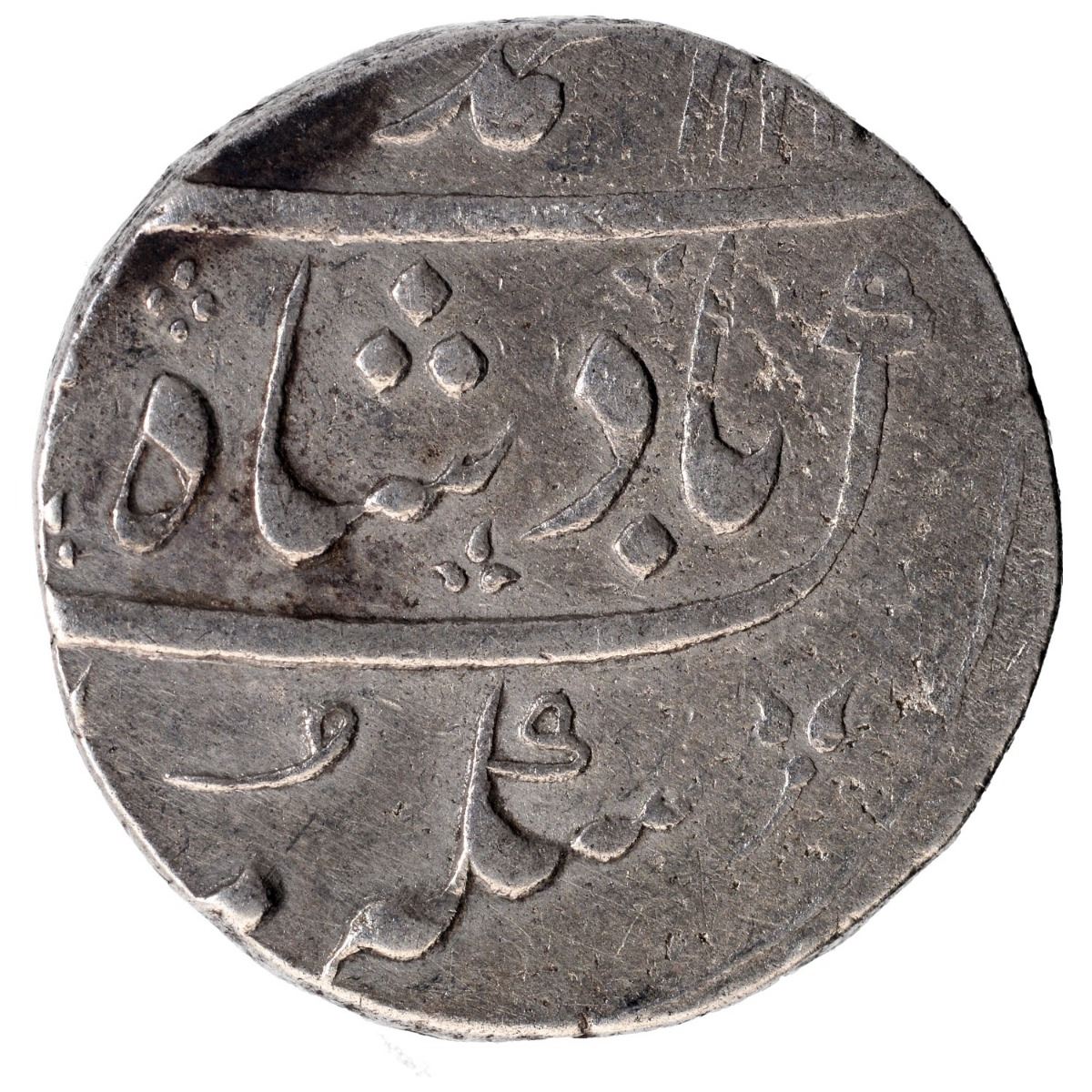 Ahmad Shah Bahadur, Ahmadabad Mint, Silver Rupee, AH 11XX/3 RY, Obv: sikka mubarak badshah ghazi, Rev: sana julus zarb, complete mint at bottom, 11.40g, 23.41mm, (KM # 446.18), about very fine.