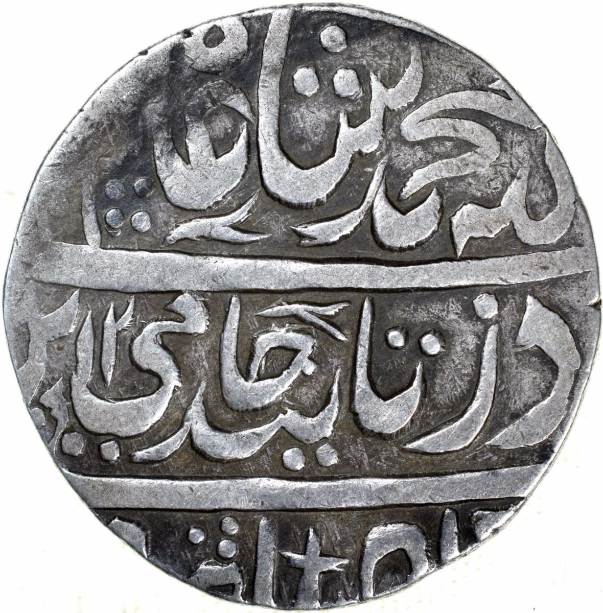 Bangash Nawab of Ahmadnagar - Farukhabad,Silver Rupee,AH 1218/39 RY,In the name ofShah Alam II, Obv:ze tayid elah couplet,Rev:sana julus zarb,10.98g, 26.44mm,(KM # 28),about very fine.