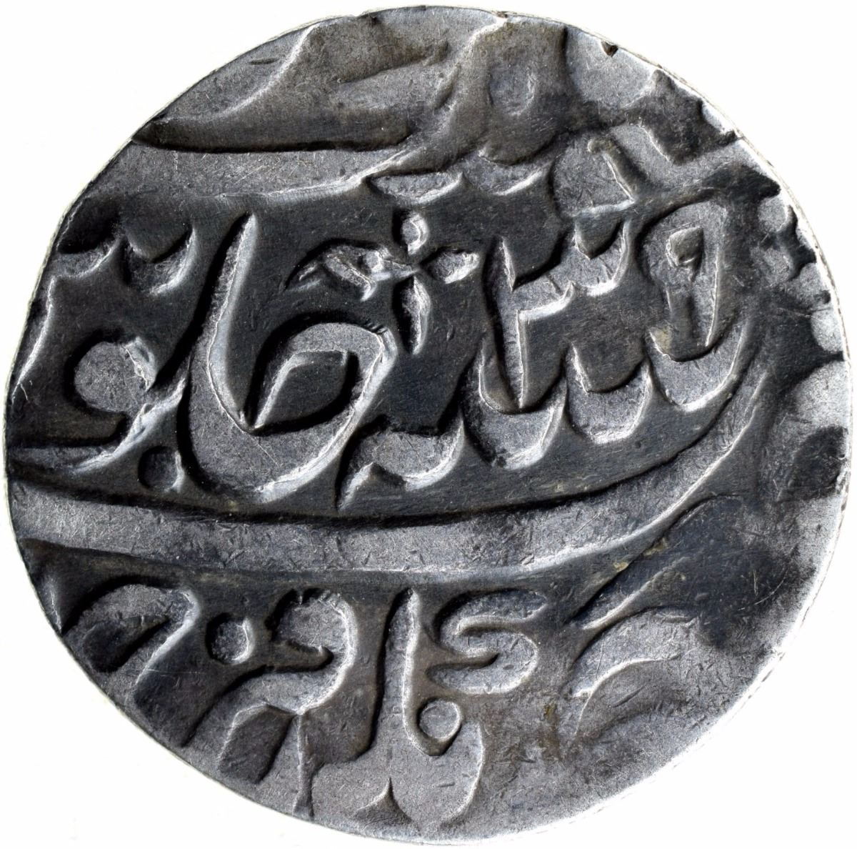 Silver One Rupee Coin of Ahmadnagar Farukhabad Mint of Farrukhabad Kingdom.