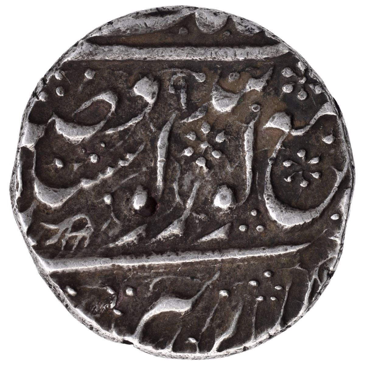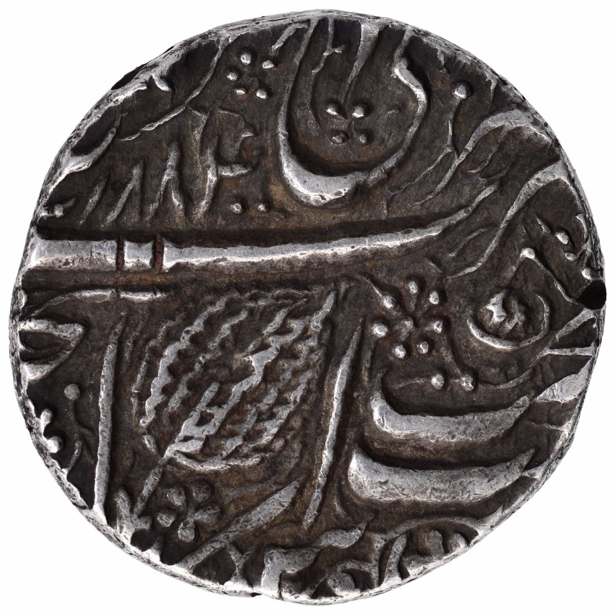 Sikh Empire, Amritsar Mint, Silver Rupee (Nanak Shahi), VS 1884, Obv:nanak shahicouplet,sikka zad bar har do alam fazal sachaha sahib ast, fateh gobind shah-e-shahan teghi nanak wahab ast,Rev: takht akal zarb sri amritsar,11.2g, 23.65mm,Unlisted Type,about very fine,Scarce.