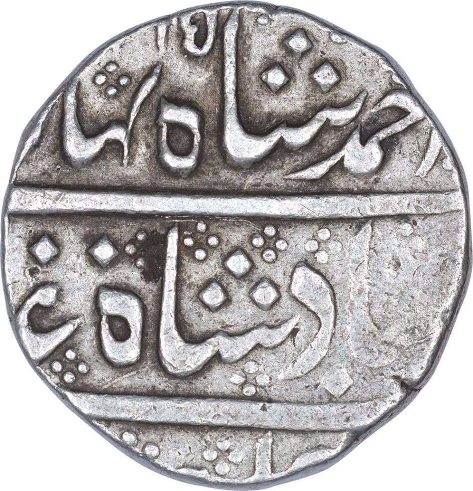 Indo-French, Arkat Mint, Silver Rupee, AH 1165/5 RY, In the name of Ahmad Shah Bahadur, Obv: sikka mubarak badshah ghazi, Rev: sana julus, zarb at bottom, 11.29g, 24.26mm, (KM # 8), about very fine, Rare.
