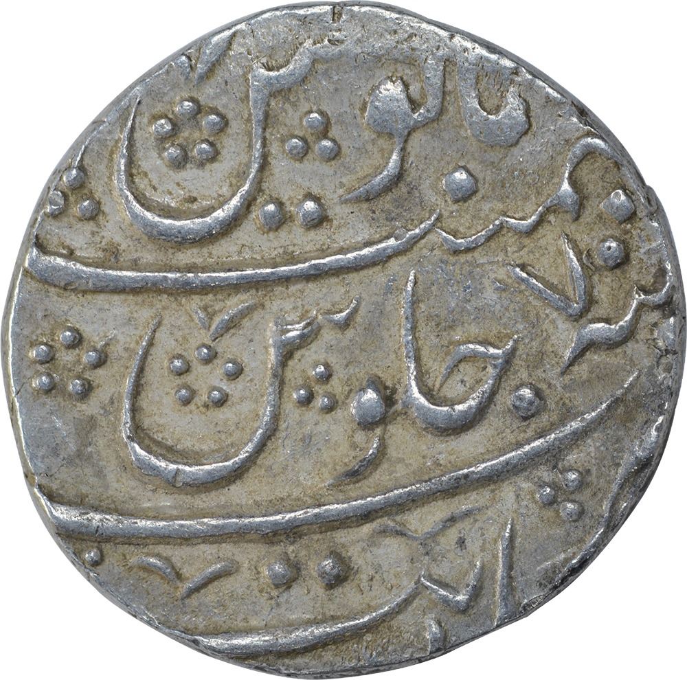 Farrukhsiyar, KanbayatMint,Silver Rupee,7 RY,Obv:badshah bahr-o-barr couplet,Rev:sana julus zarb at bottom,11.57g, 25.38mm,(KM # 377.41),about very fine+, dotted motifs on both sides, Scarce.