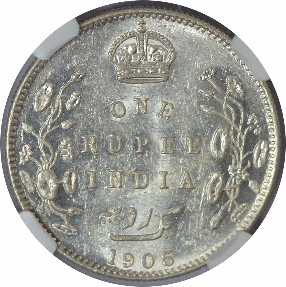 1905, King Edward VII, Silver Rupee, Bombay Mint, B incuse, (PR # 201),graded slabbed by NGC as AU 55.