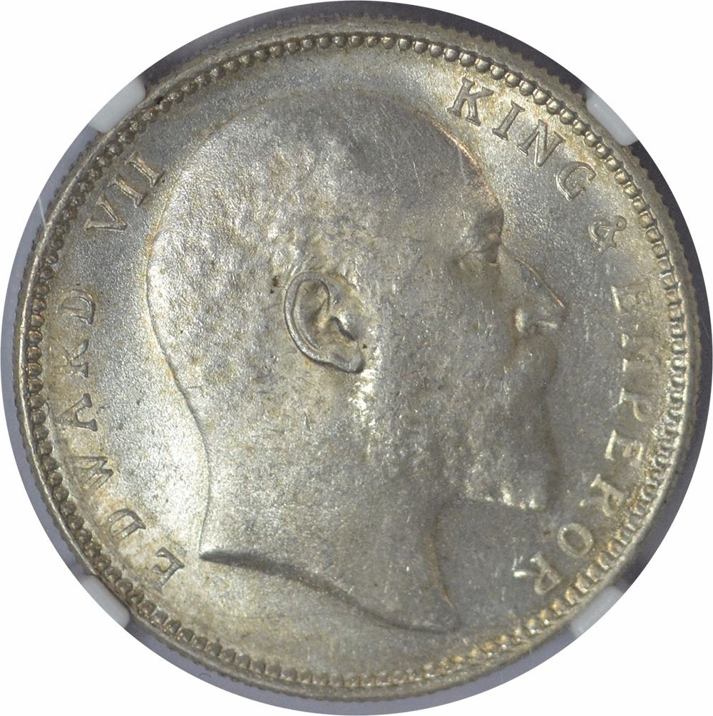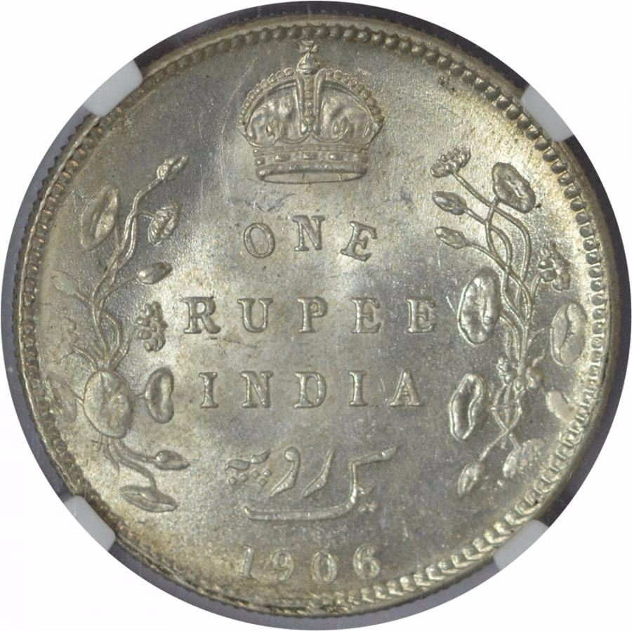 1906, King Edward VII, Silver Rupee, Calcutta Mint, (PR # 192),graded slabbed by NGC as MS 62.