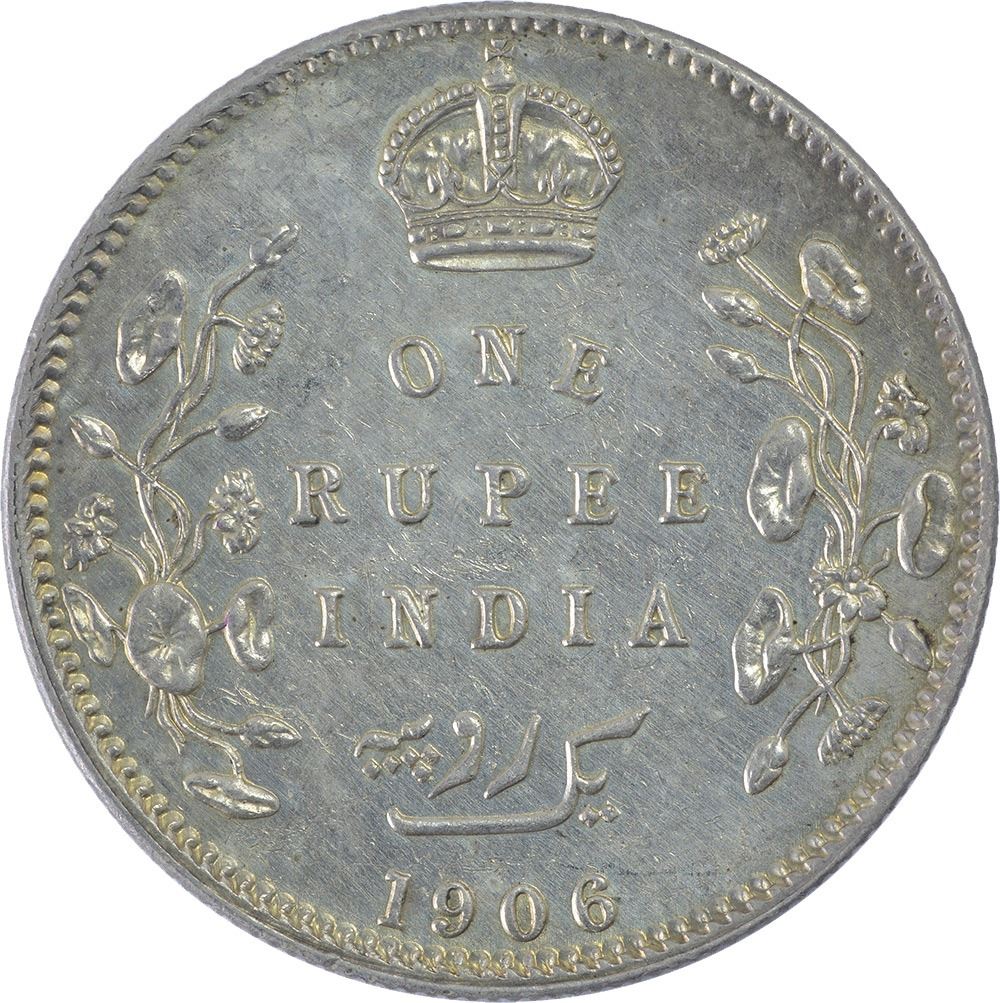 Silver One Rupee Coin of King Edward VII of Calcutta Mint of 1906.