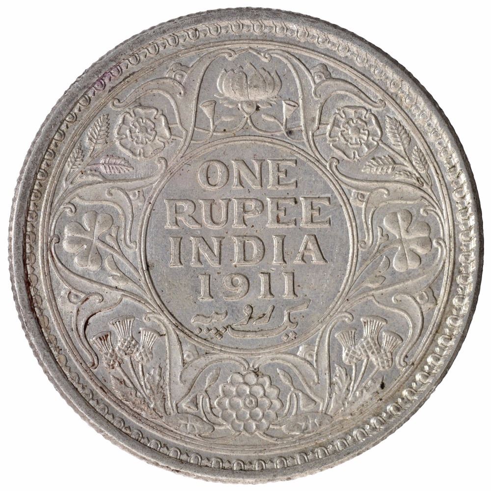 Silver One Rupee Coin of King George V of Calcutta Mint of 1911.