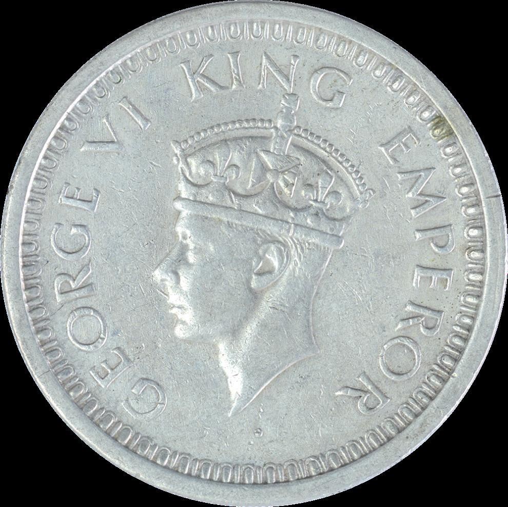 Silver One Rupee Coin of King George VI of 1945.