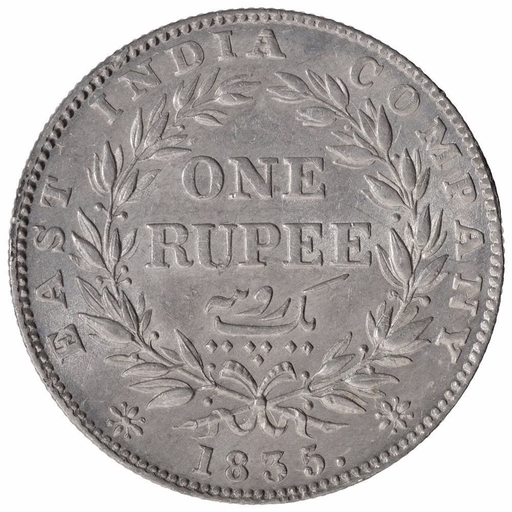 1835,King William IIII,Silver Rupee,Calcutta Mint,FIncuse,A/I,19 berries(10L + 9R), (PR # 36/GK # 16),UNC.