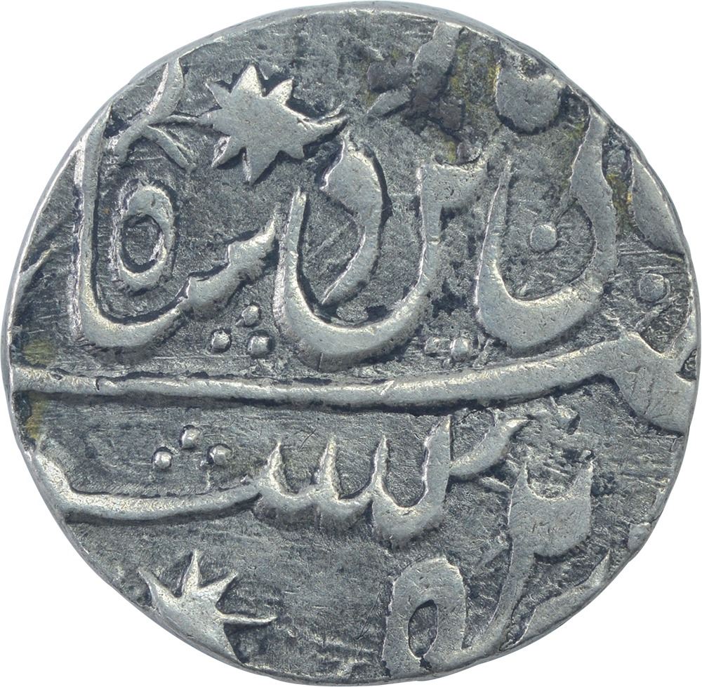 Awadh,Muhammadabad Banaras Mint, Silver Rupee,17 RY,In the name of Shah Alam II, Obv: saya-e-fazle ealhcouplet star,Rev: sana julus zarb, royal umbrella inpersian julus of letter seen,11.30g, 21.47mm, Unlisted Variety, about extremely fine, Scarce.