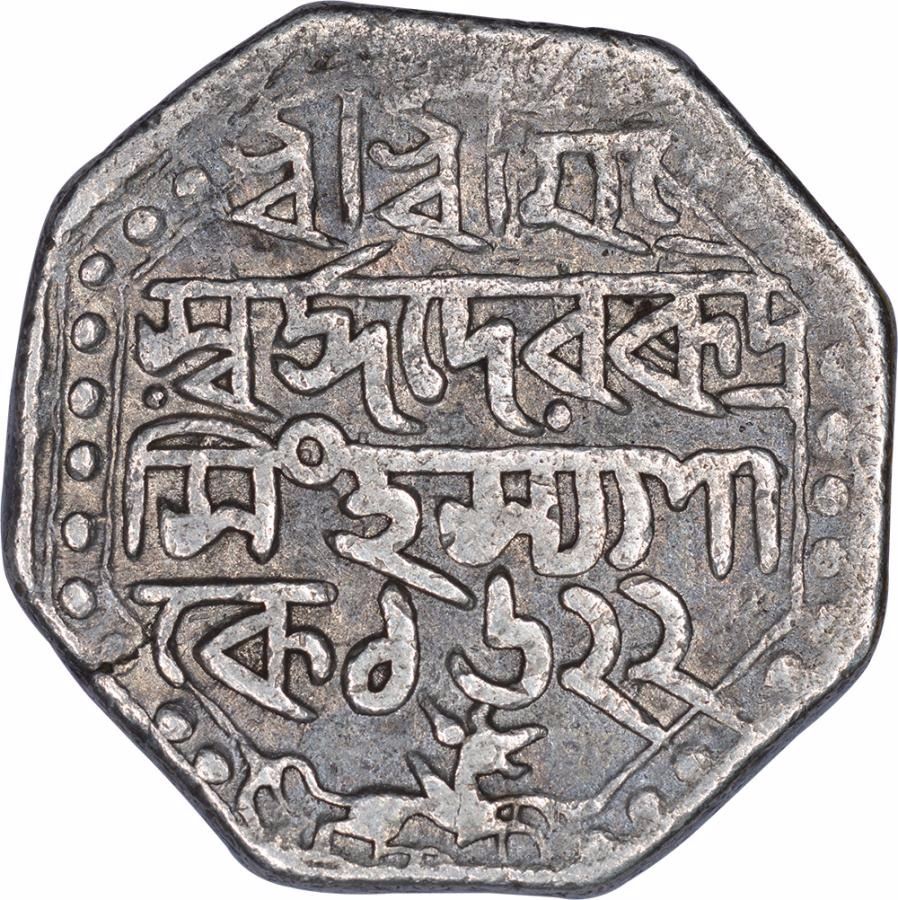 Assam Kingdom, Rudrasimha, Silver Rupee, SE 1622, Obv: four line assamese legend, sri srimat/swarga deva rudra/simhasya sa/ke1622, lion right below, Rev: four line assamese legend, 11.1g, 23.34mm, about very fine.